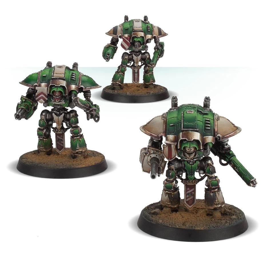 Knights are the agile war machines of the Knightly houses, each one commanded by a single skilled scion. When the Titan Legions mass for war, they call upon their allied Knightly Houses to aid them, the Questoris Support Banners acting as scouts and skirmishers for their larger kin. Bristling with fearsome weapons and protected by shimmering shields, Imperial Knights are amongst the most terrifying military assets in the galaxy.