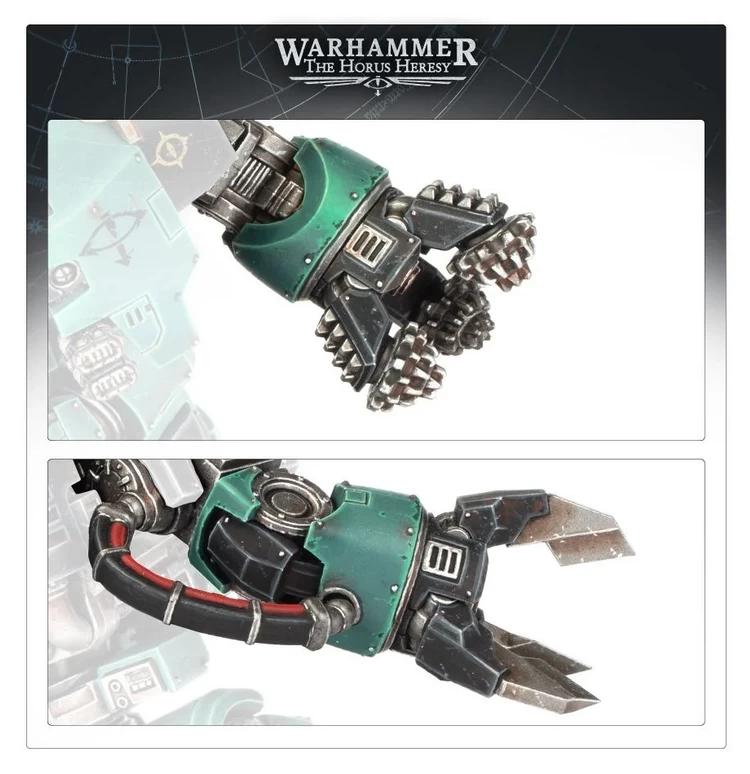 This plastic upgrade kit can be used to equip your Leviathan Siege Dreadnought with deadly melee weapons, replacing or supplementing its arm-mounted heavy munitions. The kit includes the components to build two mechanical fists for a Leviathan Dreadnought. Each fist is armed with a built-in meltagun, and can be assembled as either a crushing siege claw or grinding siege drill, with individually posable digits. The kit also provides two sets of alternate power cables, each suited to different arm poses.