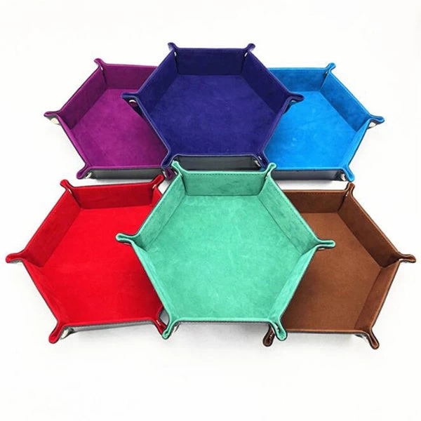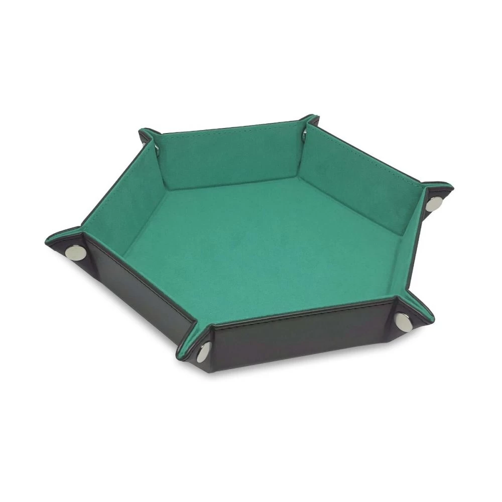 The hexagon dice trays are a flat, foldable tray the help keep rolling dice contained to your personal area. They work great anytime dice needs rolled, especially for role-playing games like Dungeons & Dragons or Pathfinder. They’re handy in games of Warhammer, Button Men, and Dice Masters.