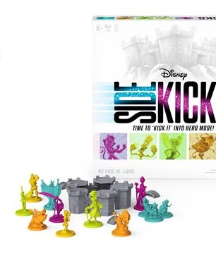 In the co-operative game Disney Sidekicks, villains – Captain Hook, Gaston, Scar, Jafar, and Maleficent – have captured your favorite heroes and locked them up in a castle. Now you take on the role of one or more sidekicks from famous Disney films – Timon & Pumbaa, Tinker Bell, Abu, Lumiere, or Flora, Fauna & Merryweather – to travel through the game board together with other sidekicks to battle villains, rescue villagers, collect locks, and build your powers to become a hero in your own right.