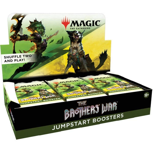 Each The Brothers’ War: Jumpstart Booster Box contains 18 Jumpstart Booster Pack. Each booster has a theme. Just grab two packs and shuffle them together for wild combos and a unique gameplay experience that’s great for a quick, casual game, for older players looking to jump back in, or for giving new players a fun, simple way to learn the game.